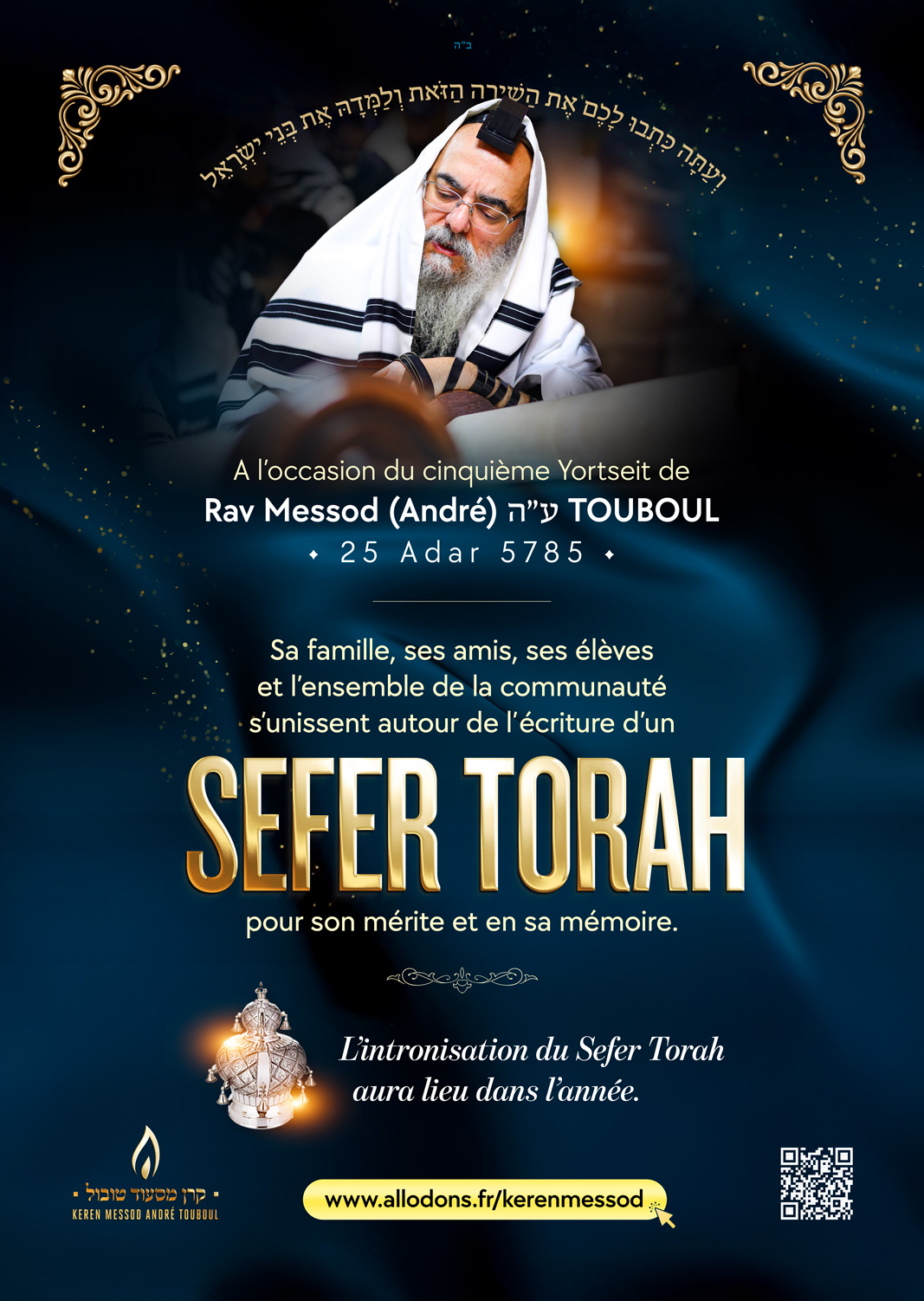Ecrivons un Sefer Torah à sa mémoire et exprimons ainsi notre gratitude pour toute l’œuvre qu’il a accomplie.