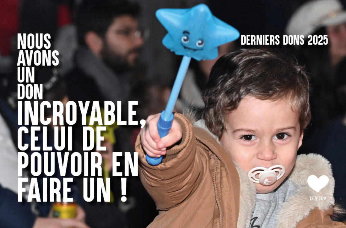 La seule chose qu’on a envie de vous dire c’est que chez Lev Tov, du 1er janvier au 31 décembre, quand vous faites un don, vous aidez ceux qui en ont le plus besoin et ça… ça n’a pas de prix !