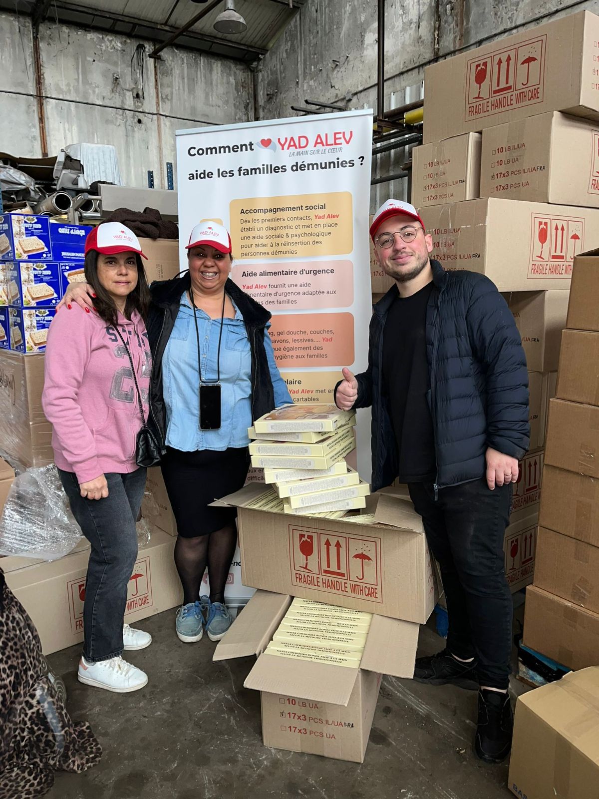 Yad Alev est 100% benevole et 100% des dons sont redistribués aux familles sous forme de colis alimentaire 📦🍗🍖🌭🍔🥓🥫